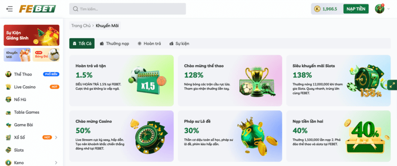 Giao diện của FEBET được thiết kế thân thiện, giúp người chơi dễ dàng thao tác và tham gia các trò chơi yêu thích.