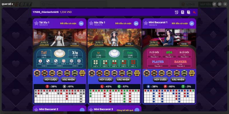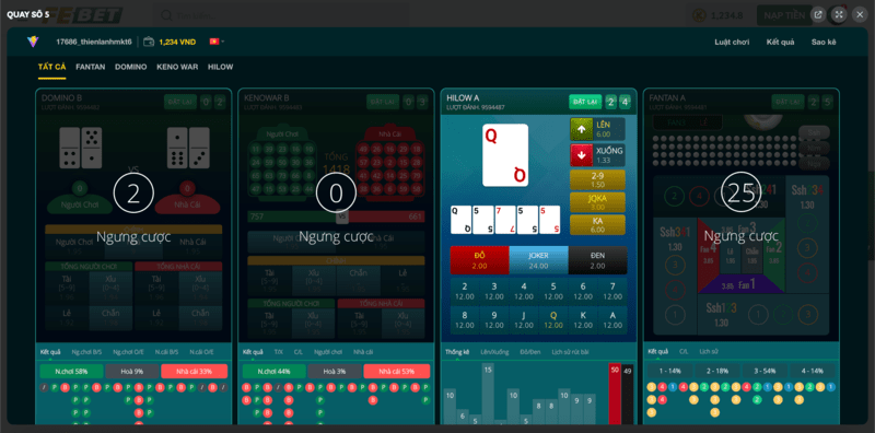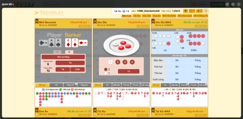 - Theo Dõi Quay Số: Sau khi đặt cược, hệ thống sẽ quay số và hiển thị kết quả.