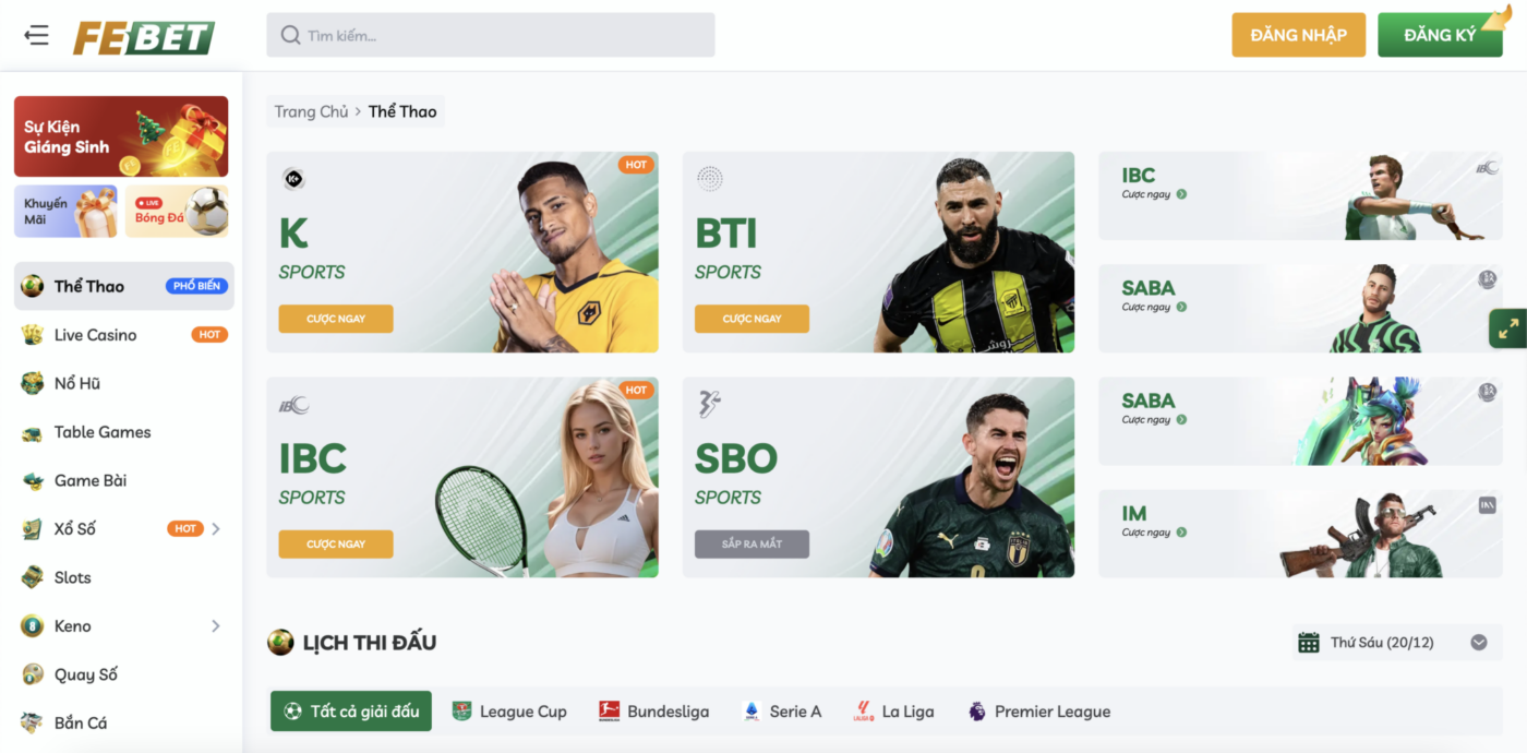 Thể Thao FEBET là nền tảng cá cược thể thao hàng đầu tại Việt Nam, nơi bạn có thể tham gia các môn thể thao yêu thích và tận dụng tỷ lệ cược cạnh tranh nhất thị trường.