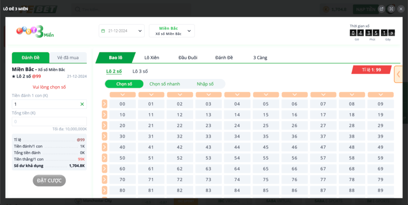 Lô xiên cho phép người chơi chọn từ 2 đến 4 con số để đặt cược. Nếu tất cả các con số xuất hiện trong kết quả, phần thưởng nhận được sẽ rất giá trị. Đây là hình thức phù hợp cho những ai yêu thích thử thách.
